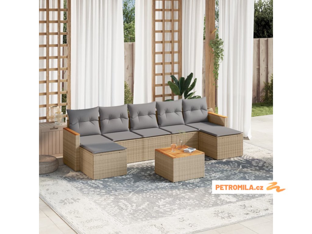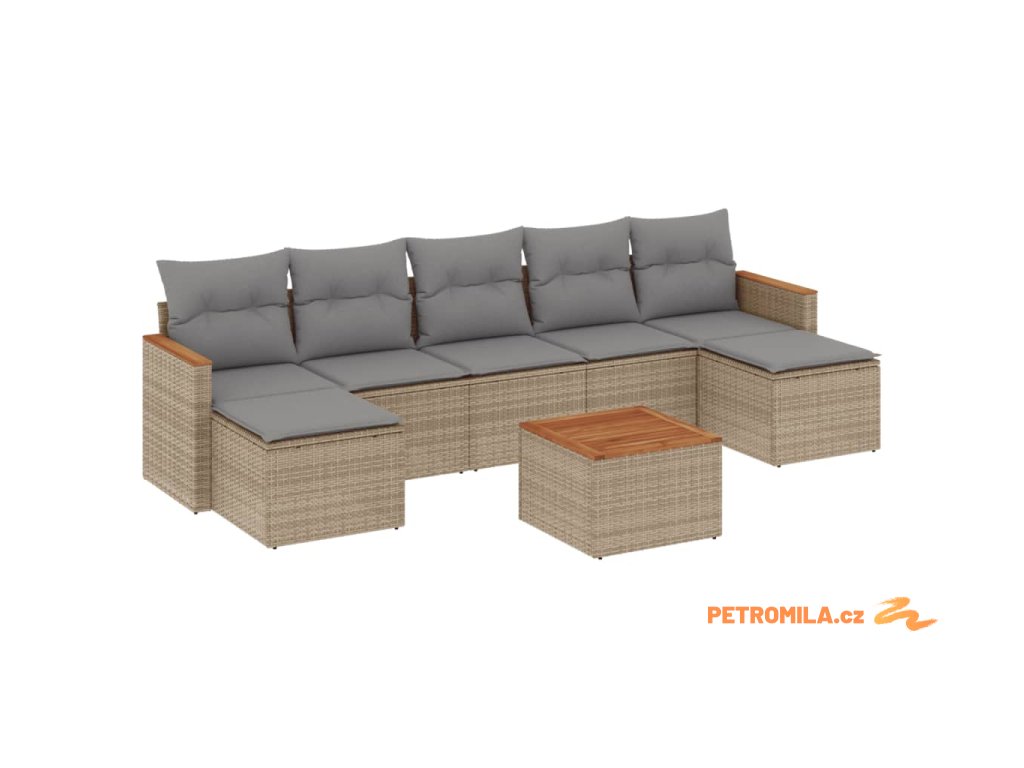 Sada zahradních pohovek s polštářem 8 pcs Béžová Poly ratan