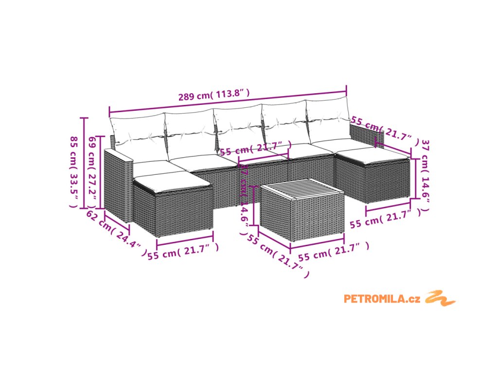 Sada zahradních pohovek s polštářem s úložištěm 8 pcs polyratan