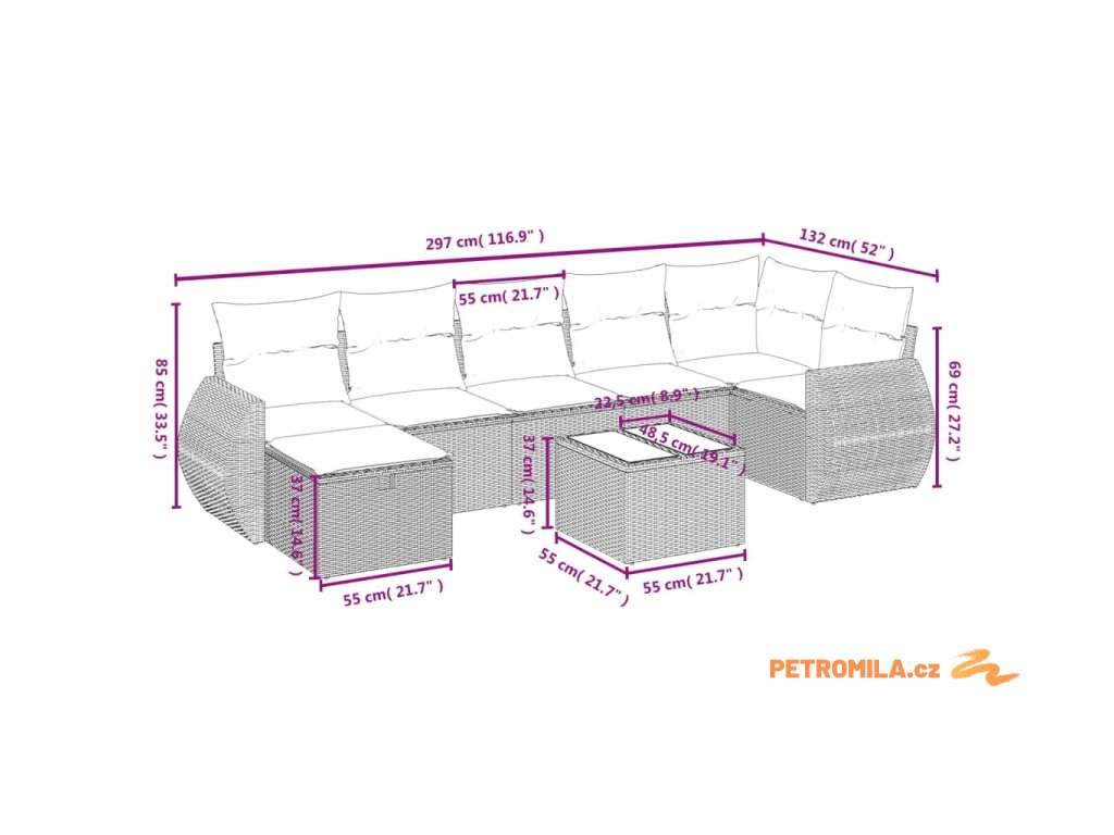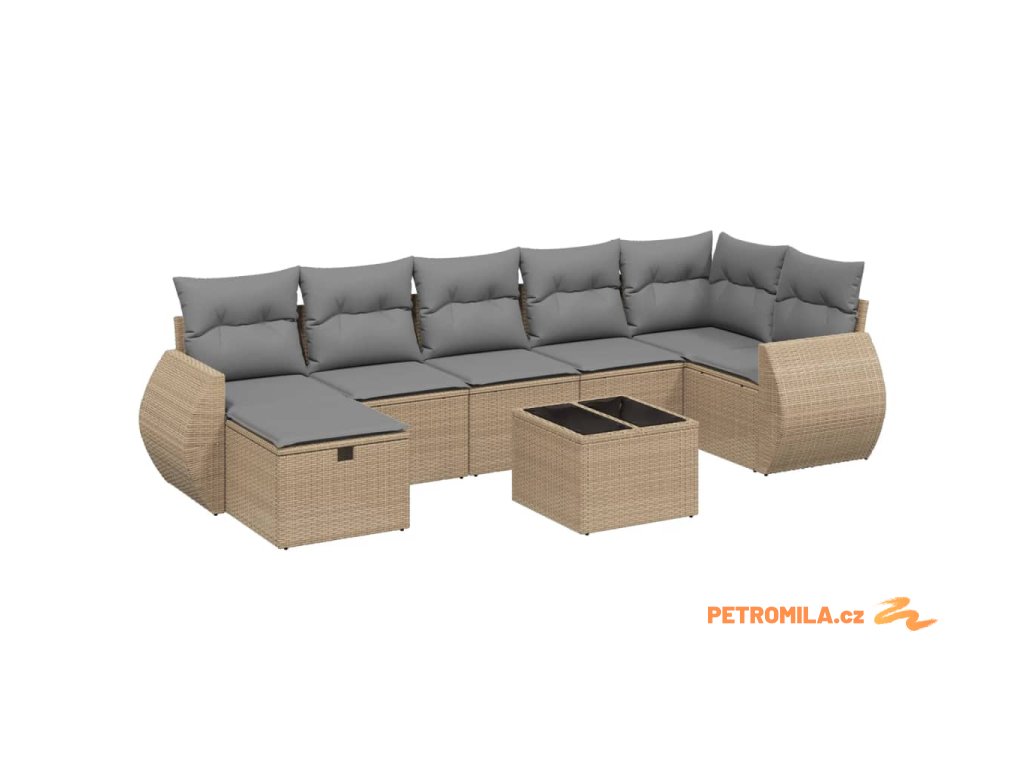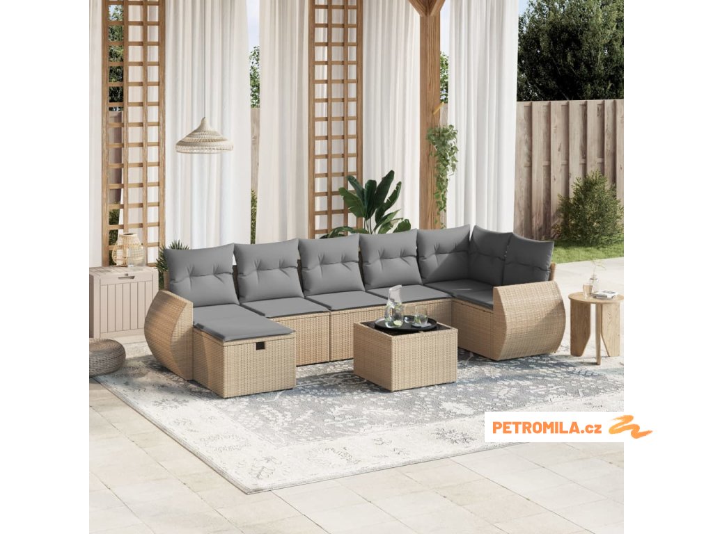 Sada zahradních pohovek s polštářem 8 pcs Béžová Poly ratan