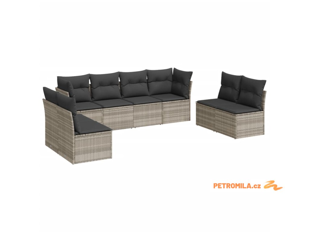 8dílná zahradní sedací souprava a podušky světle šedá polyratan