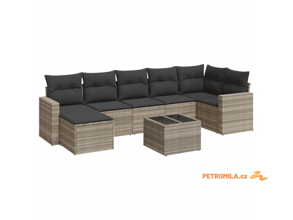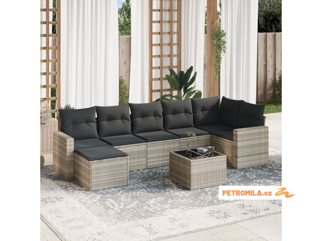 8dílná zahradní sedací souprava a podušky světle šedá polyratan