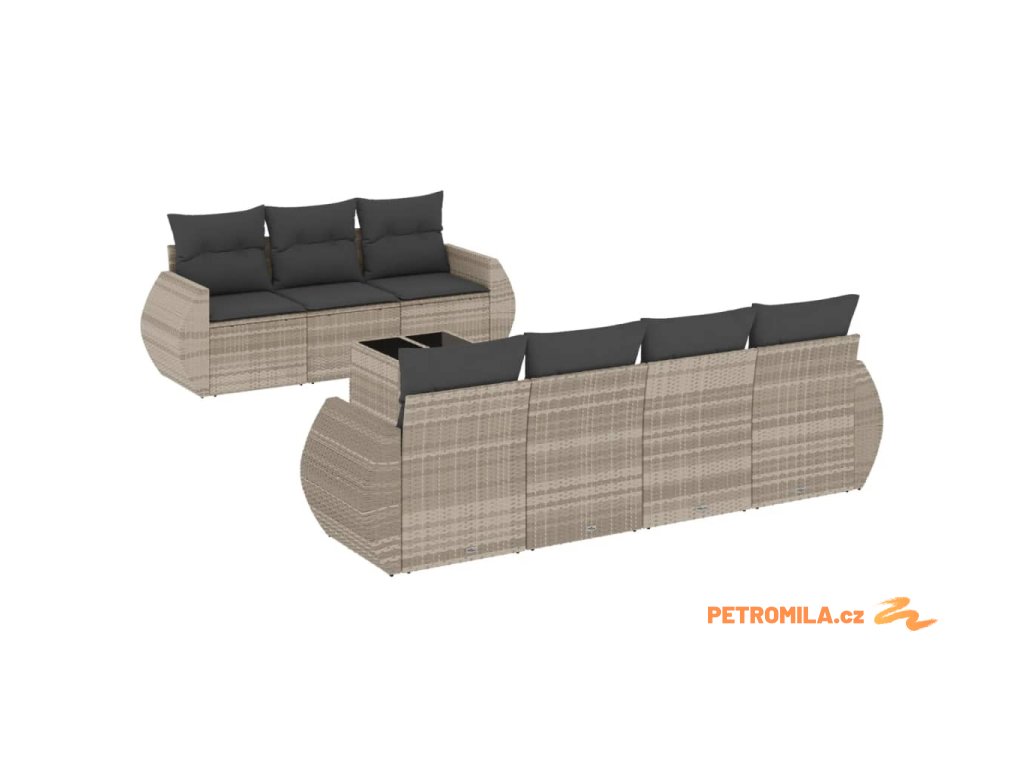 8dílná zahradní sedací souprava a podušky světle šedá polyratan