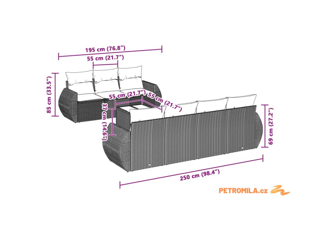 Sada zahradních pohovek s polštářem 9 pcs Béžová Poly ratan
