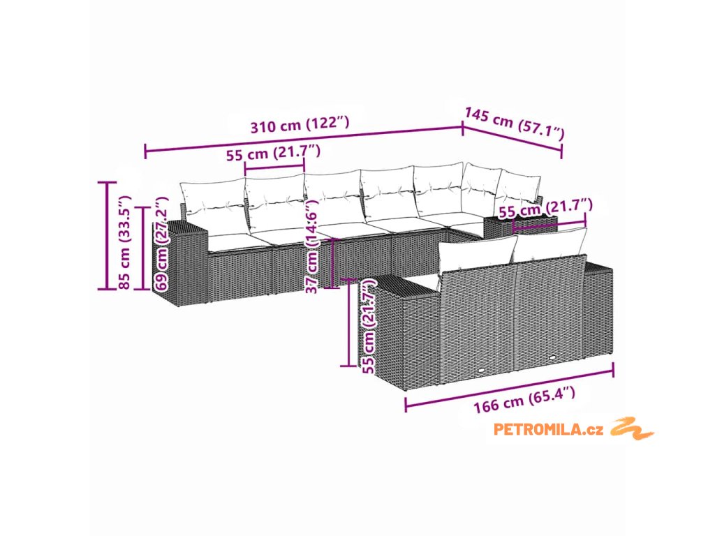 Sada zahradních pohovek s polštářem 8 pcs Béžová Poly ratan