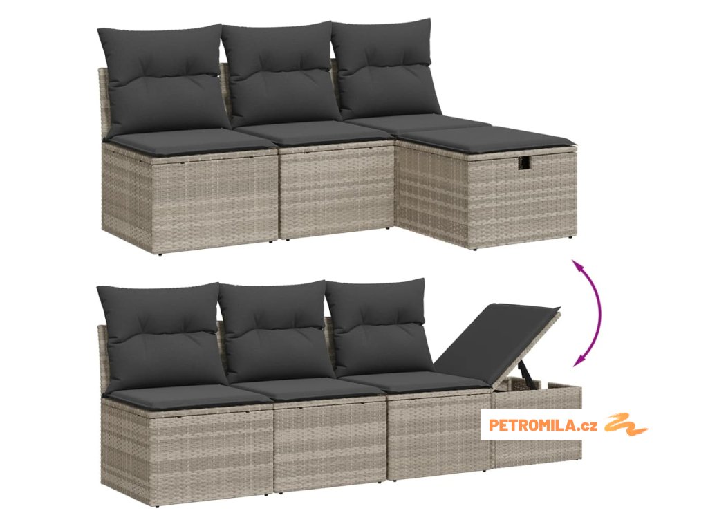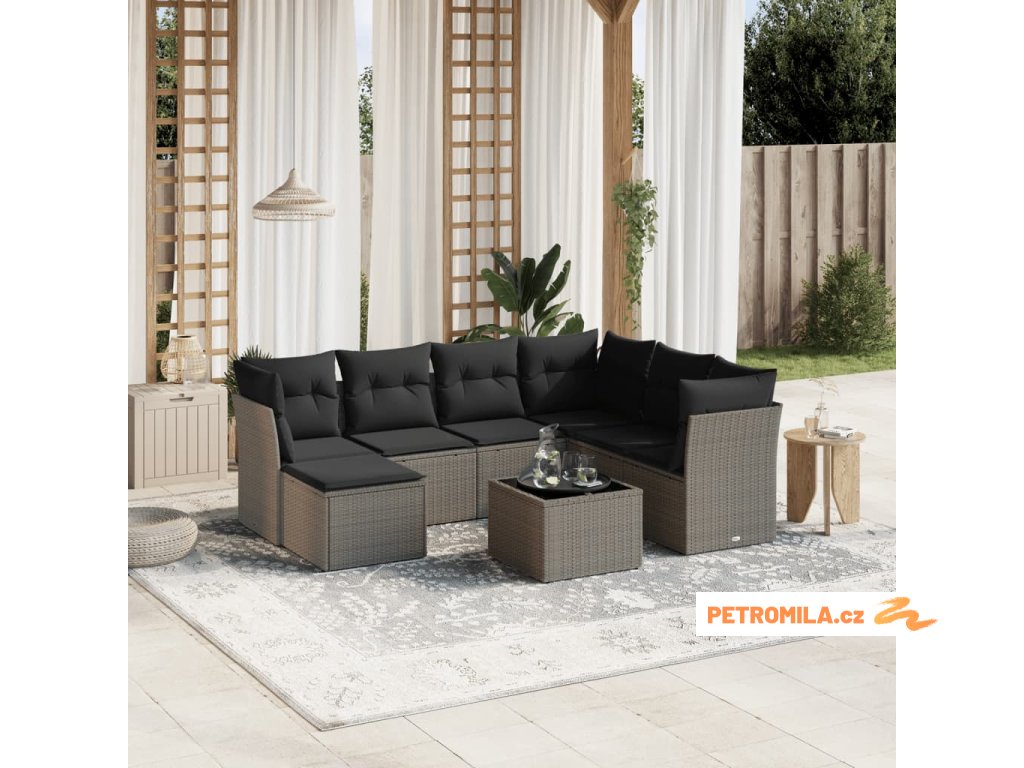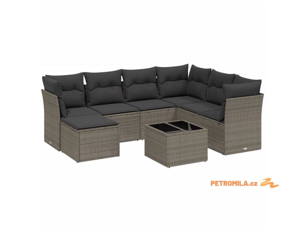 8dílná zahradní sedací souprava a podušky světle šedá polyratan