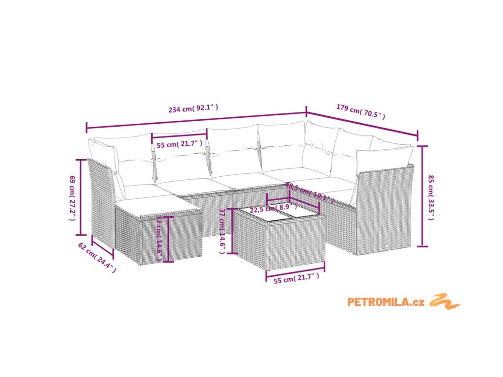 Tato zahradní sedací souprava je dokonalým doplňkem vaší zahrady, terasy nebo dvorku a poskytne vám pohodlné a příjemné místo, kde si můžete povídat s rodinou a přáteli nebo jen tak odpočívat a užívat si pobyt venku.