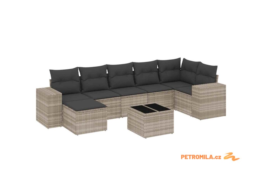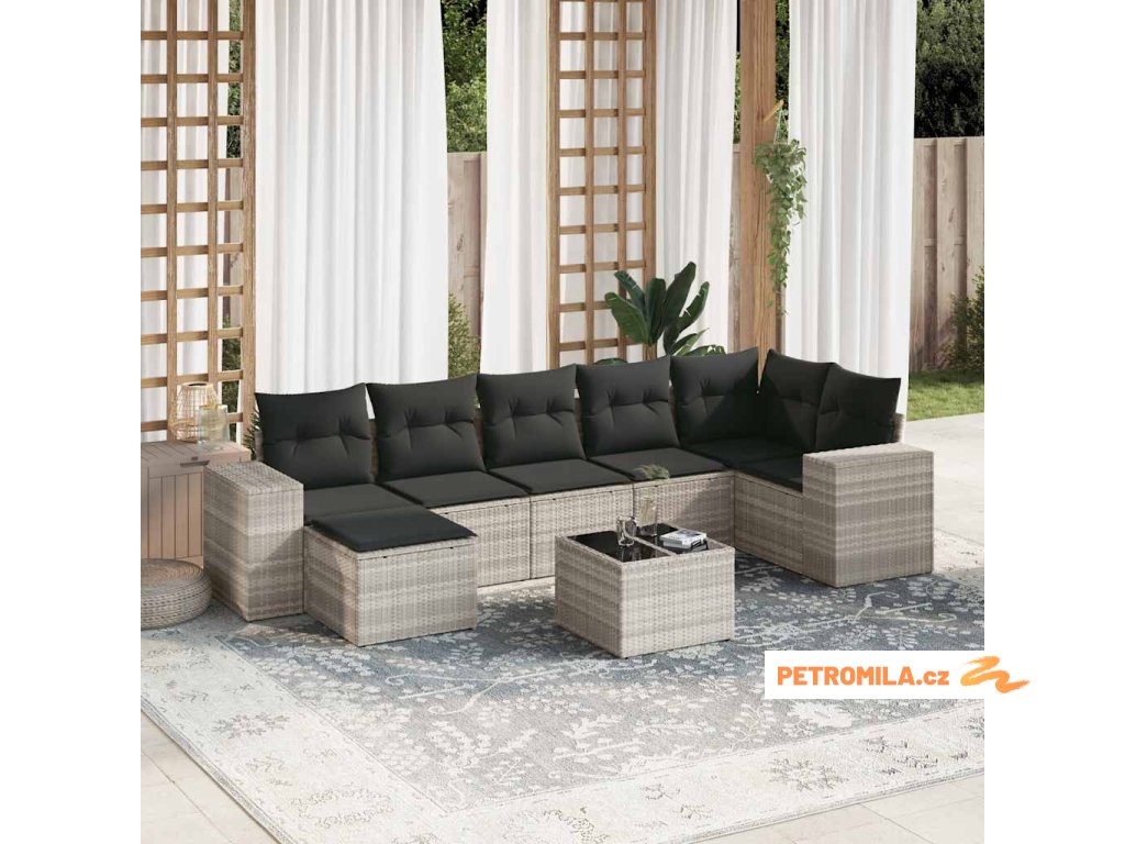 8dílná zahradní sedací souprava a podušky světle šedá polyratan