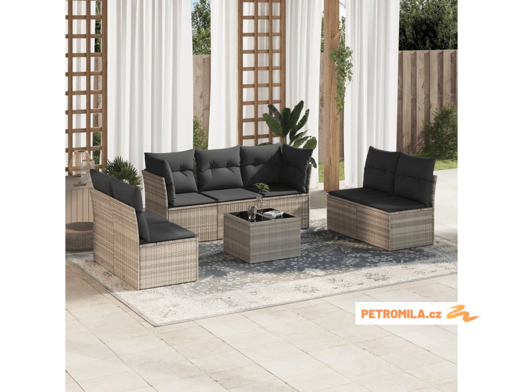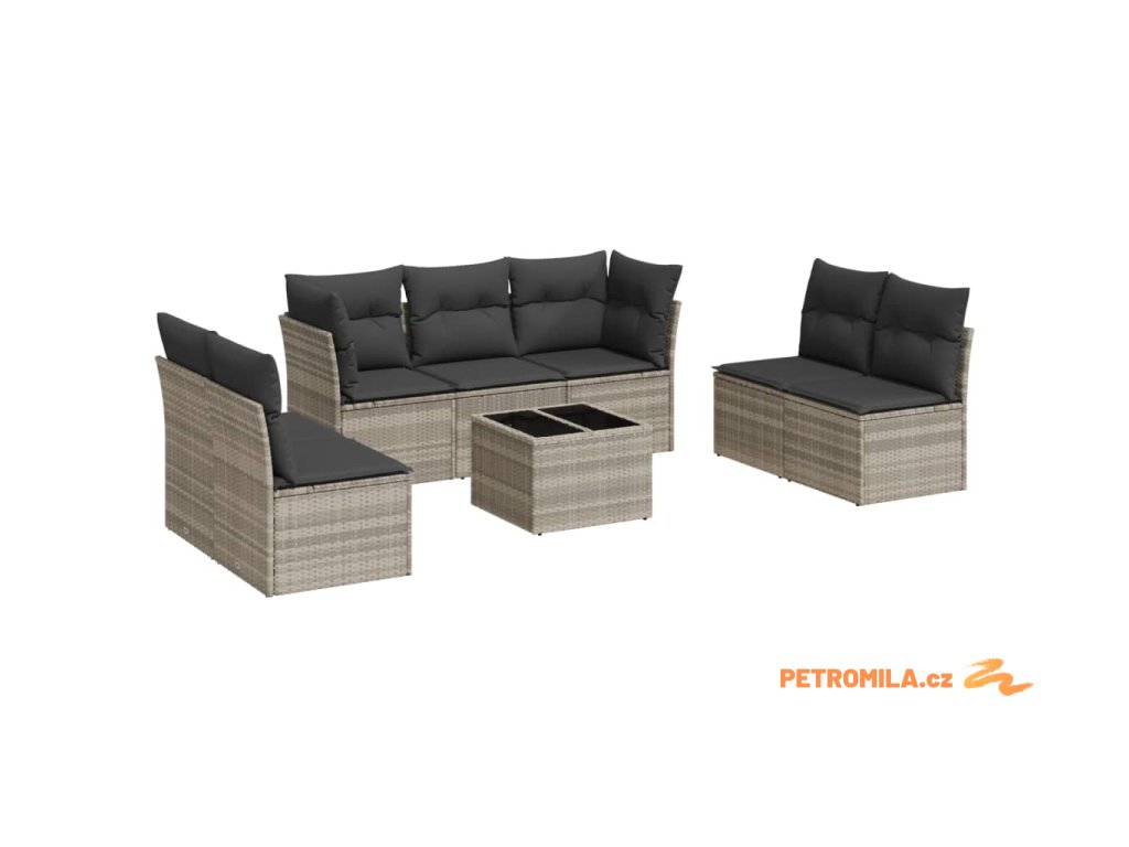 8dílná zahradní sedací souprava a podušky světle šedá polyratan