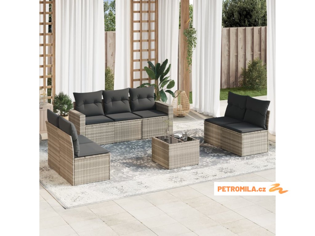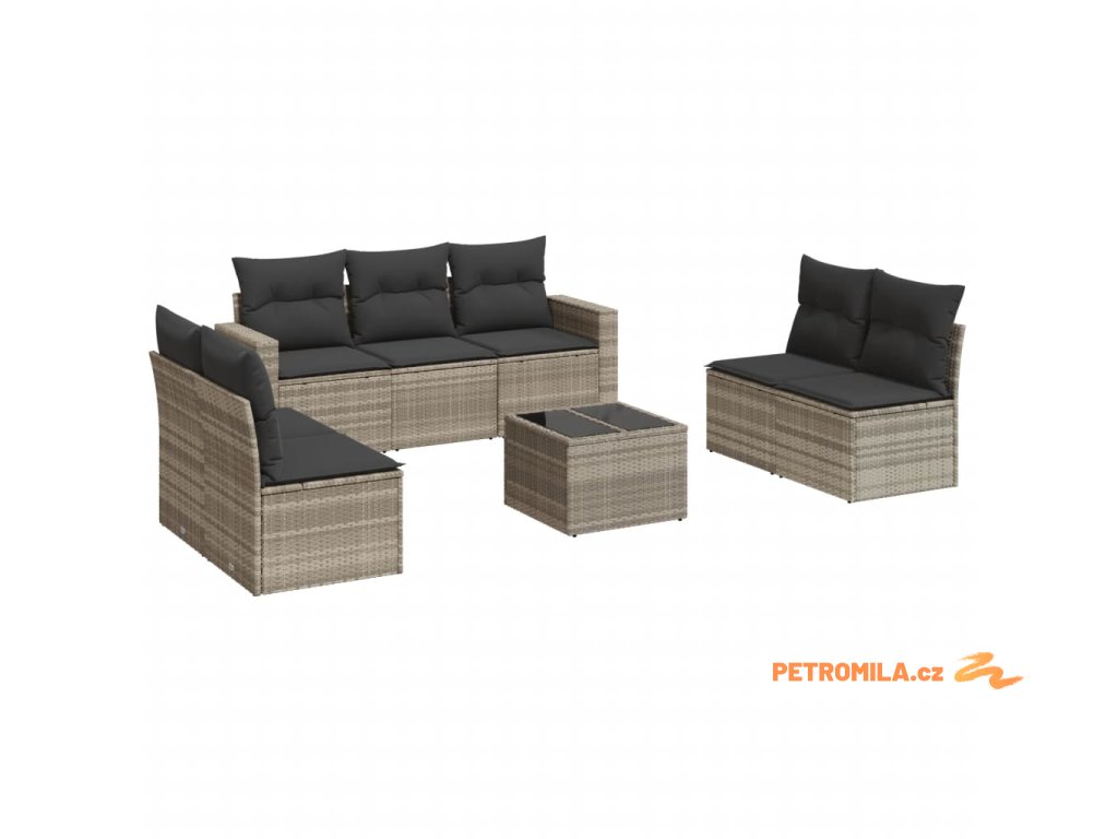 8dílná zahradní sedací souprava a podušky světle šedá polyratan