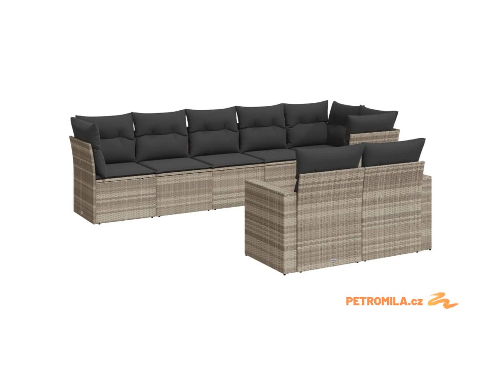 8dílná zahradní sedací souprava a podušky světle šedá polyratan