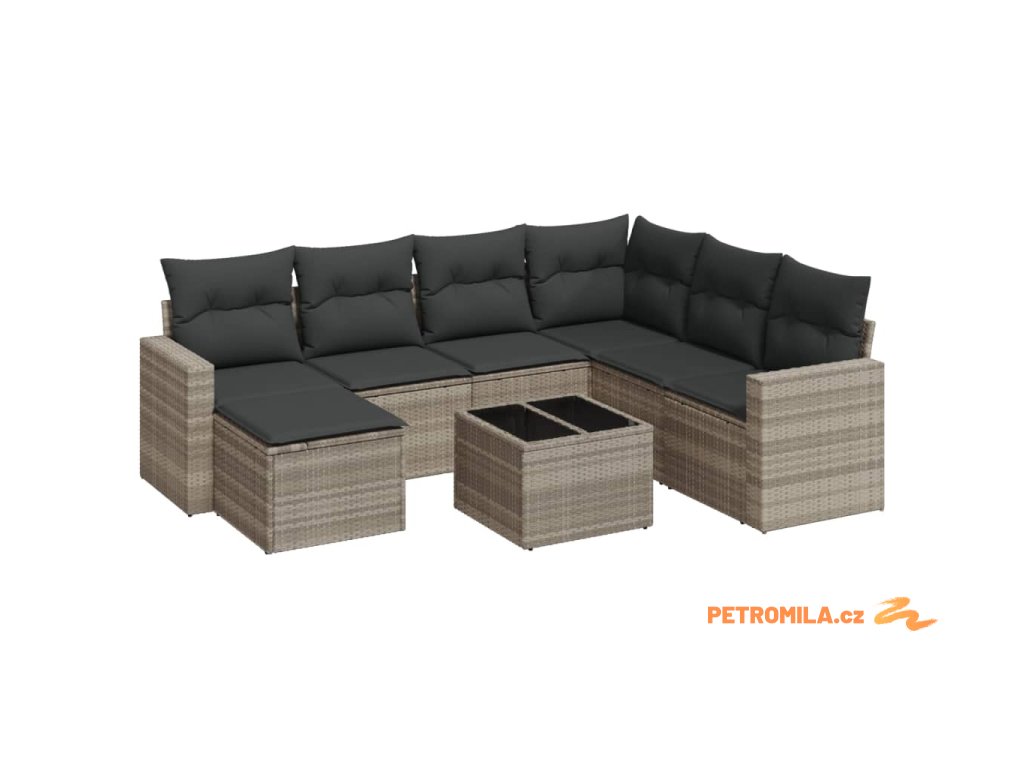 8dílná zahradní sedací souprava a podušky světle šedá polyratan