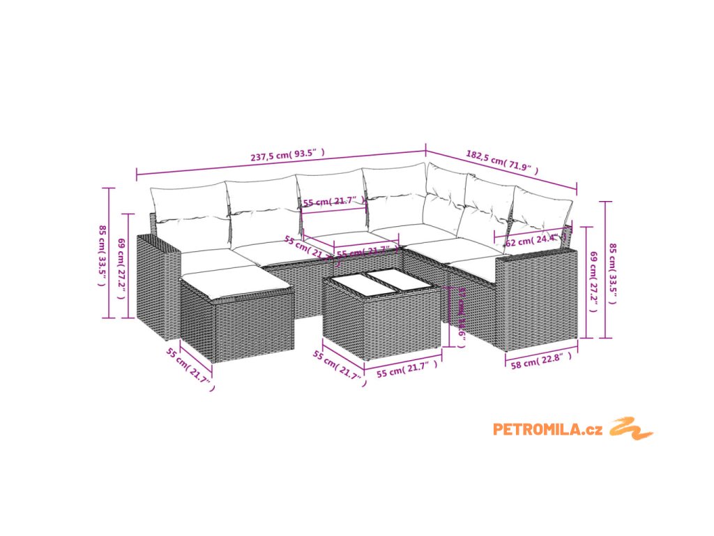 Tato zahradní sedací souprava je dokonalým doplňkem vaší zahrady, terasy nebo dvorku a poskytne vám pohodlné a příjemné místo, kde si můžete povídat s rodinou a přáteli nebo jen tak odpočívat a užívat si pobyt venku.