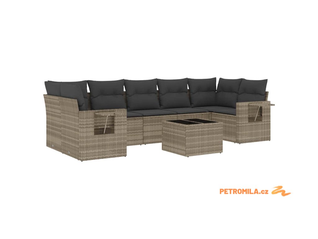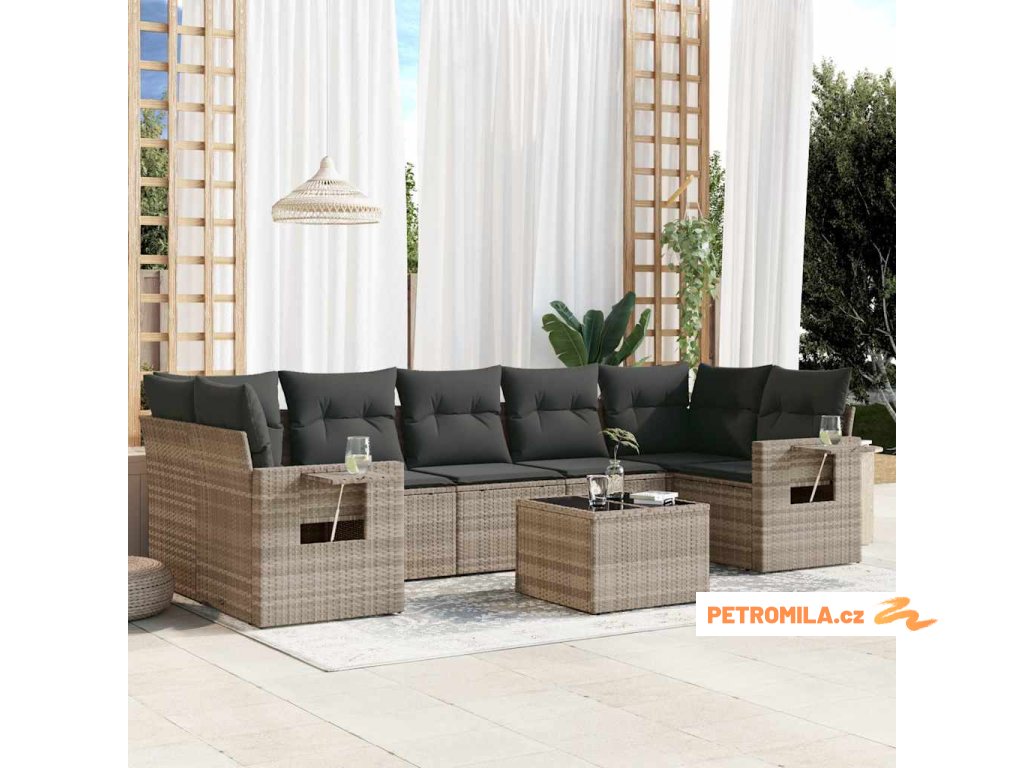 8dílná zahradní sedací souprava a podušky světle šedá polyratan