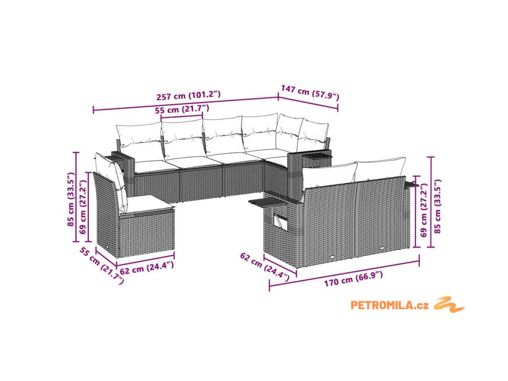 Tato zahradní sedací souprava je dokonalým doplňkem vaší zahrady, terasy nebo dvorku a poskytne vám pohodlné a příjemné místo, kde si můžete povídat s rodinou a přáteli nebo jen tak odpočívat a užívat si pobyt venku.