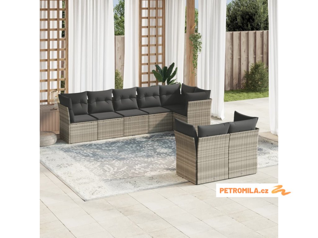 8dílná zahradní sedací souprava a podušky světle šedá polyratan