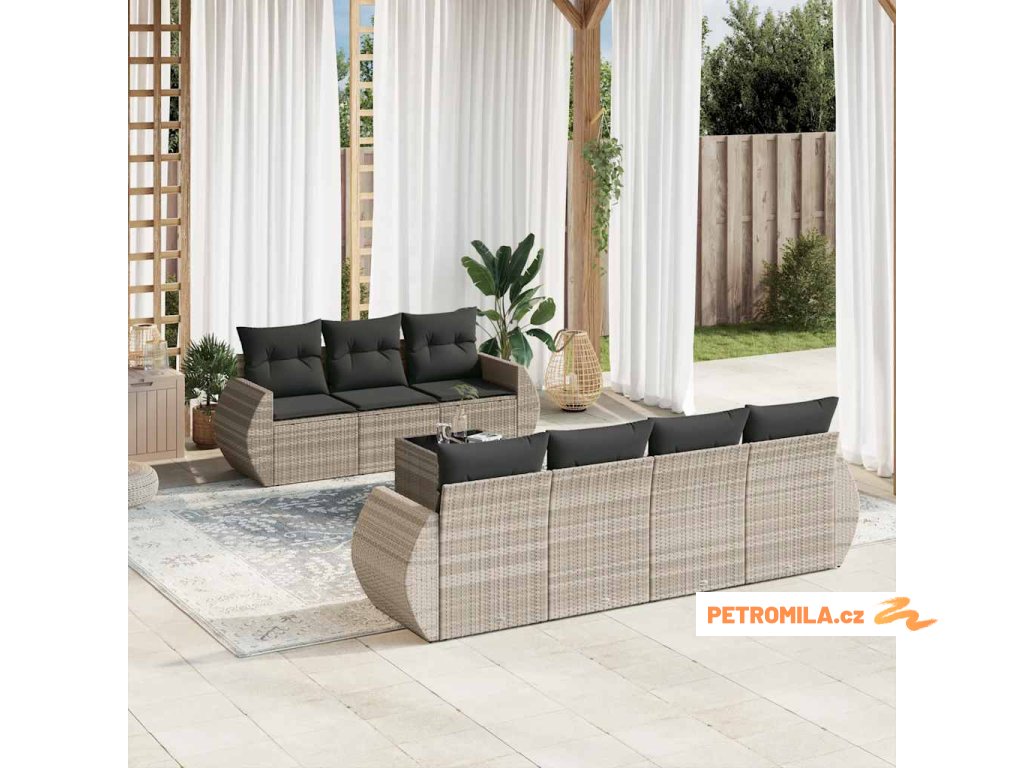 8dílná zahradní sedací souprava a podušky světle šedá polyratan