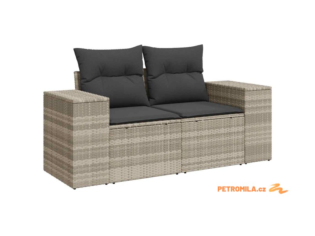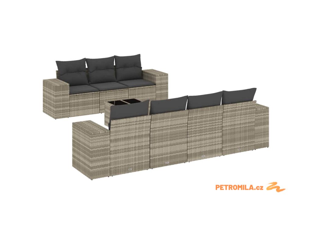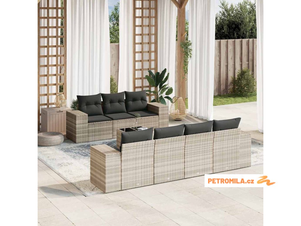 8dílná zahradní sedací souprava a podušky světle šedá polyratan