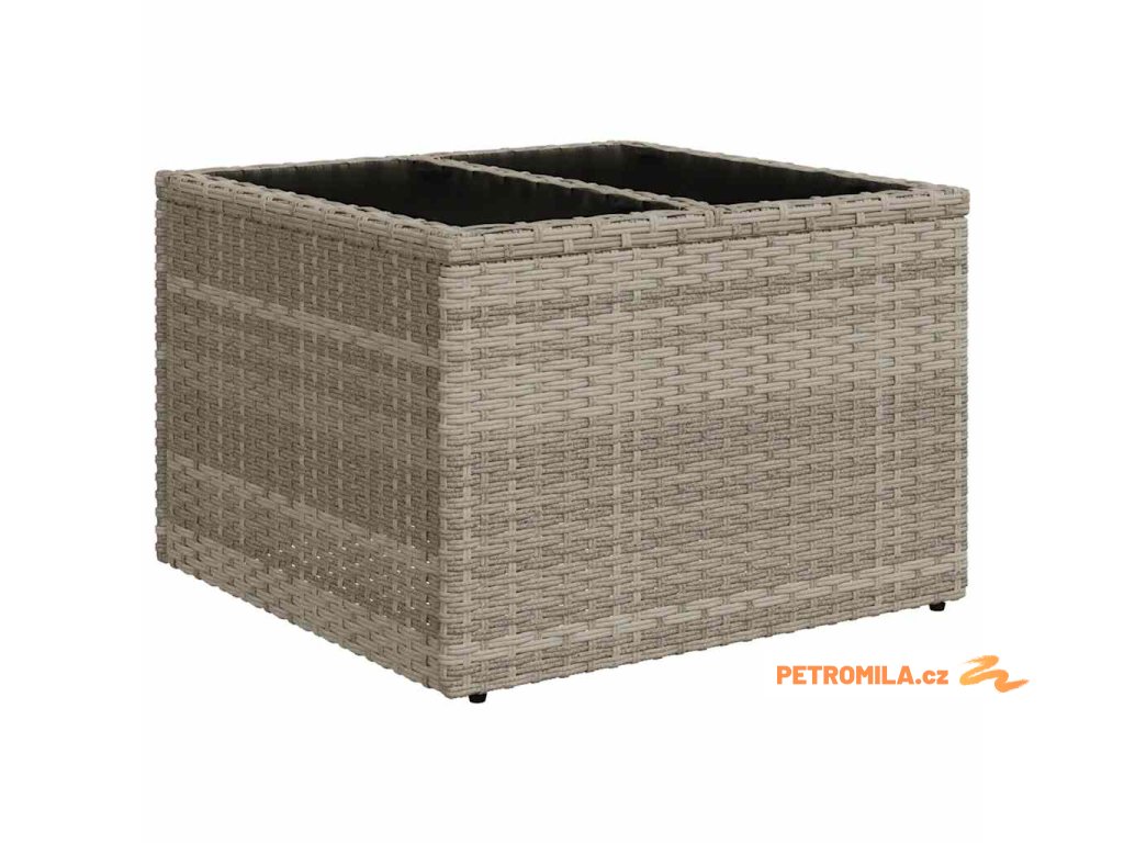 - Materiál: PE ratan, práškově lakovaná ocel, tvrzené sklo