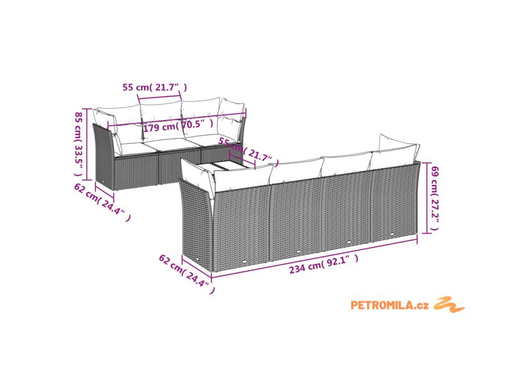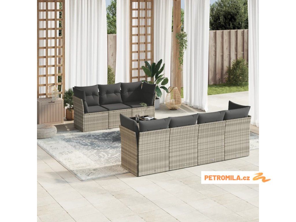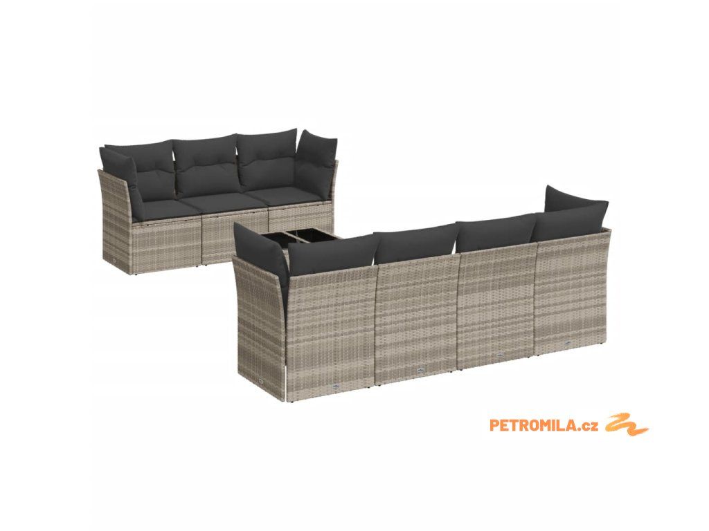 8dílná zahradní sedací souprava a podušky světle šedá polyratan