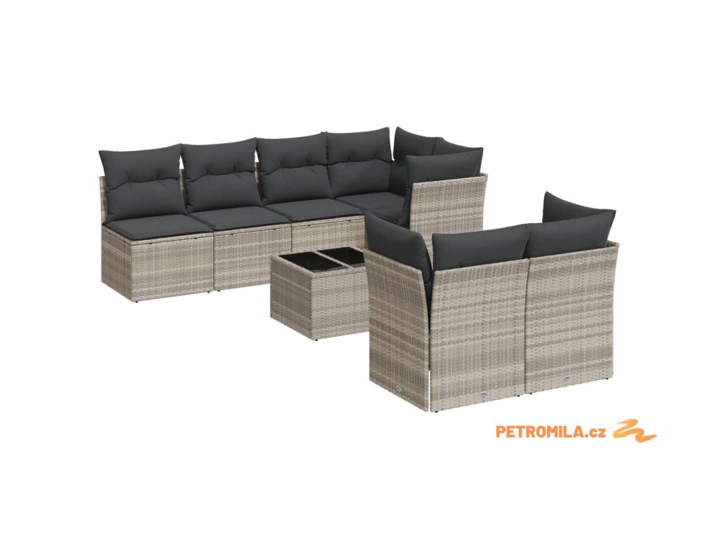 8dílná zahradní sedací souprava a podušky světle šedá polyratan