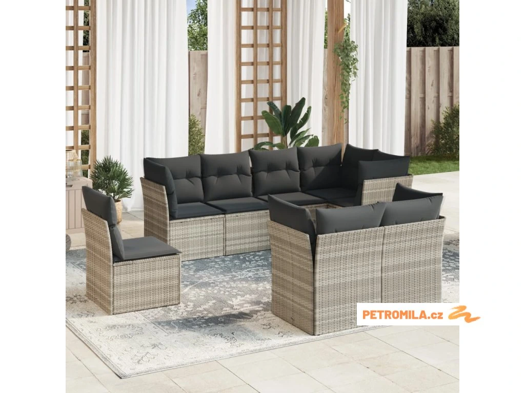 8dílná zahradní sedací souprava a podušky světle šedá polyratan