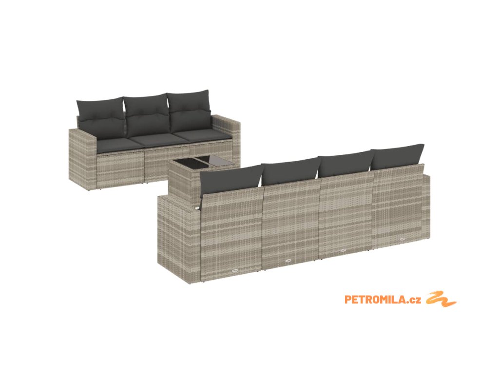 8dílná zahradní sedací souprava a podušky světle šedá polyratan