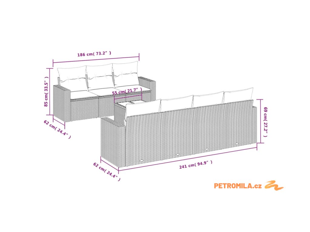 Sada zahradních pohovek 8 pcs Šedá polyratan