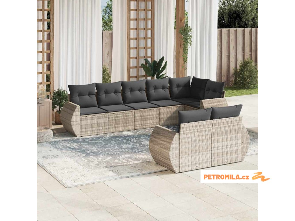 8dílná zahradní sedací souprava a podušky světle šedá polyratan