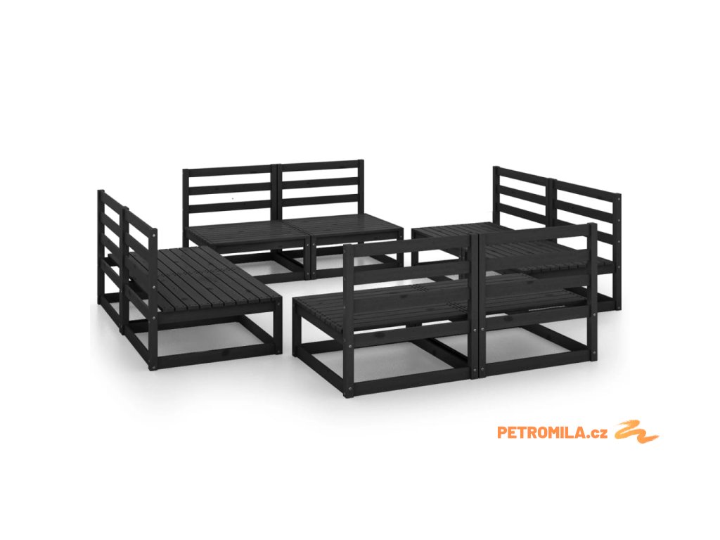 8dílná zahradní sedací souprava černá masivní borovice