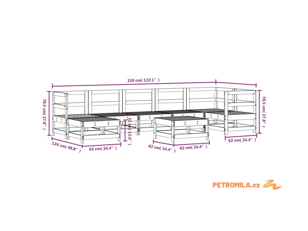 - Rozměry středové pohovky: 62 x 62 x 70,5 cm (Š x H x V)