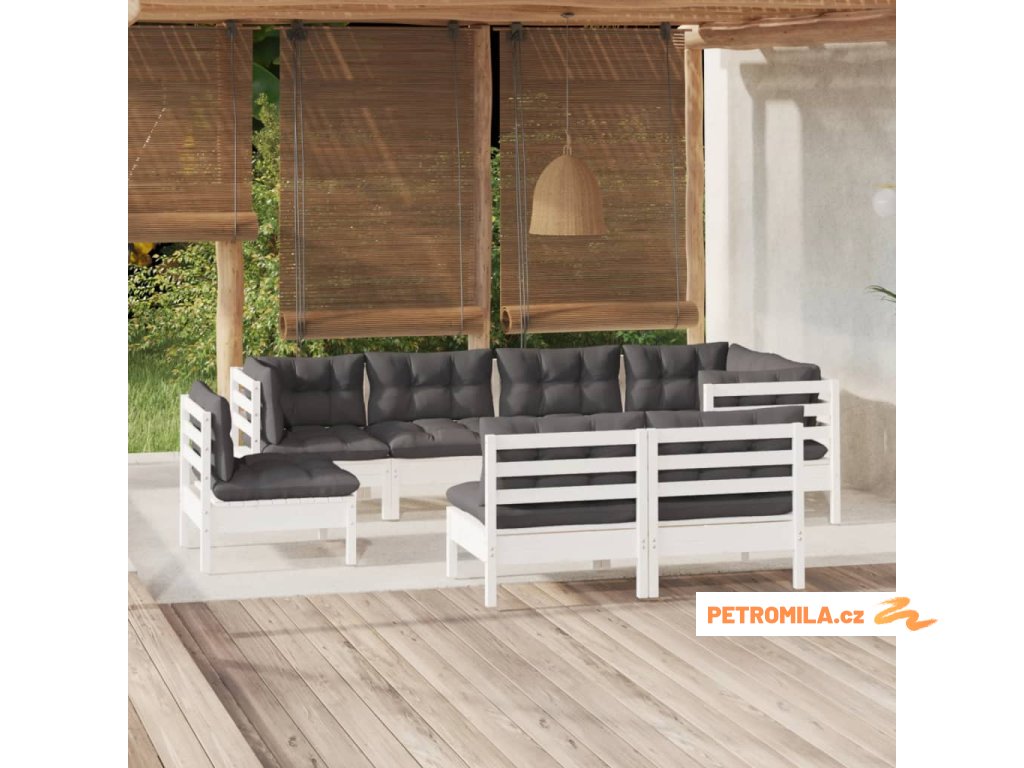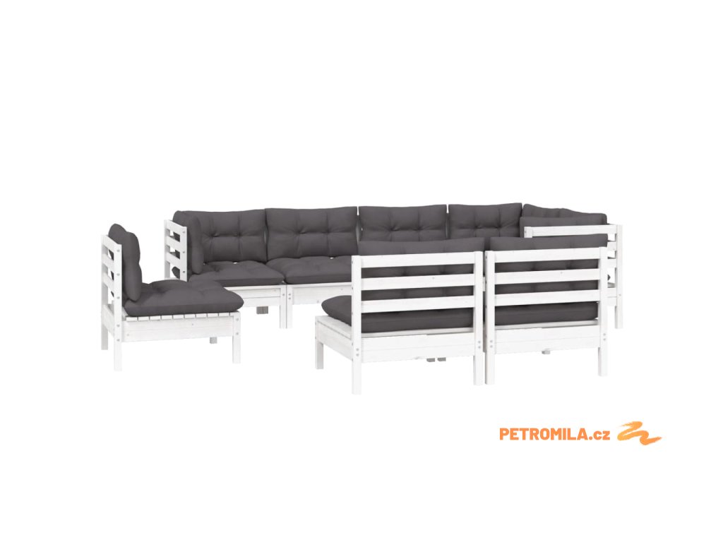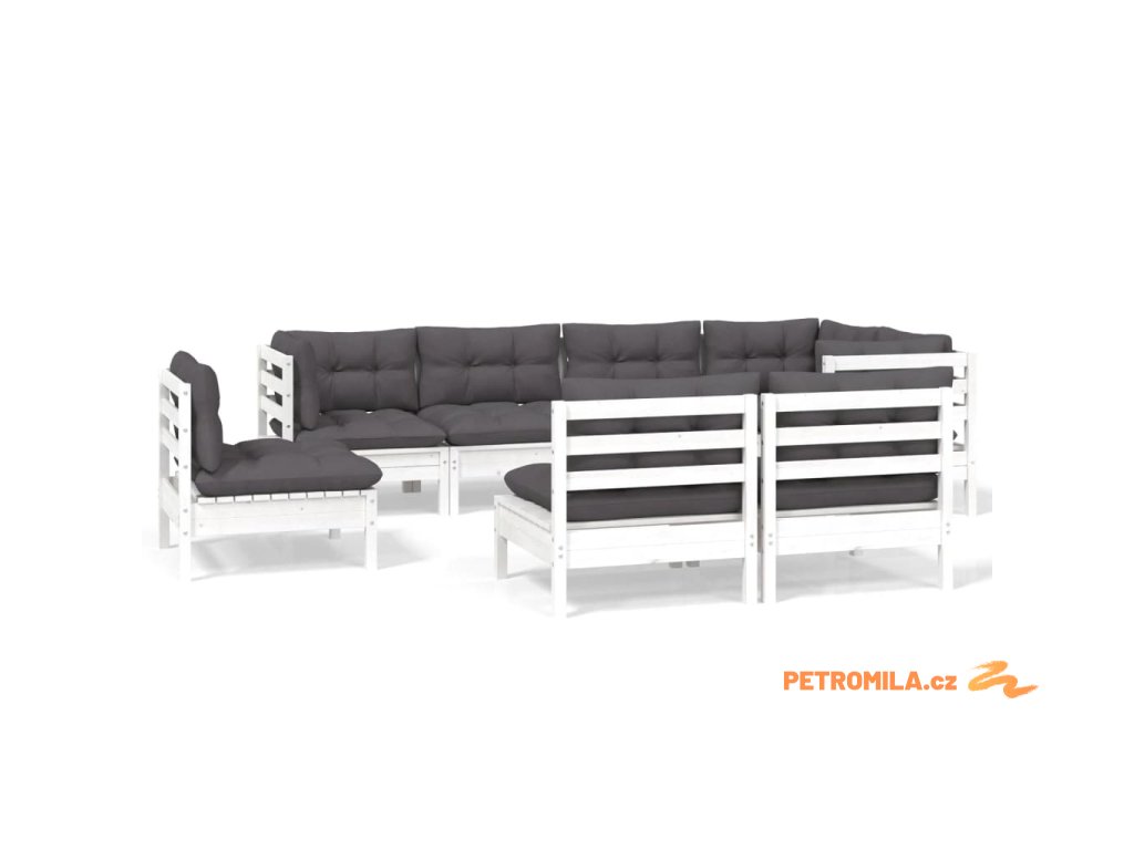8dílná zahradní sedací souprava podušky bílá masivní borovice