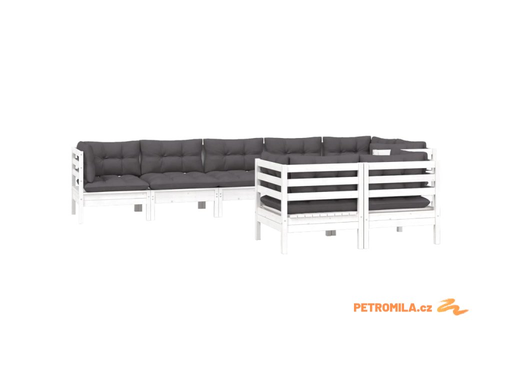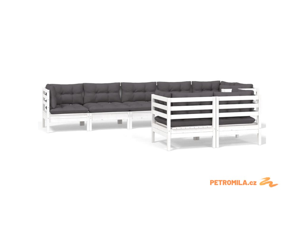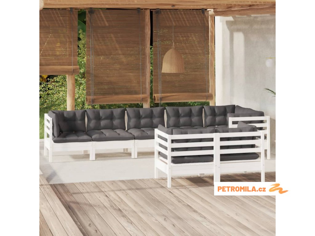 8dílná zahradní sedací souprava podušky bílá masivní borovice