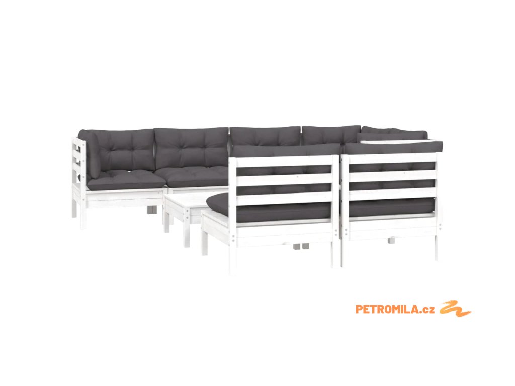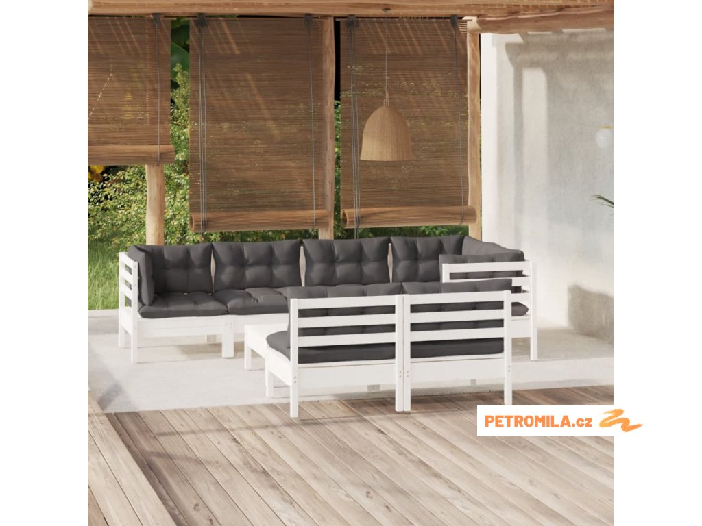 8dílná zahradní sedací souprava podušky bílá masivní borovice