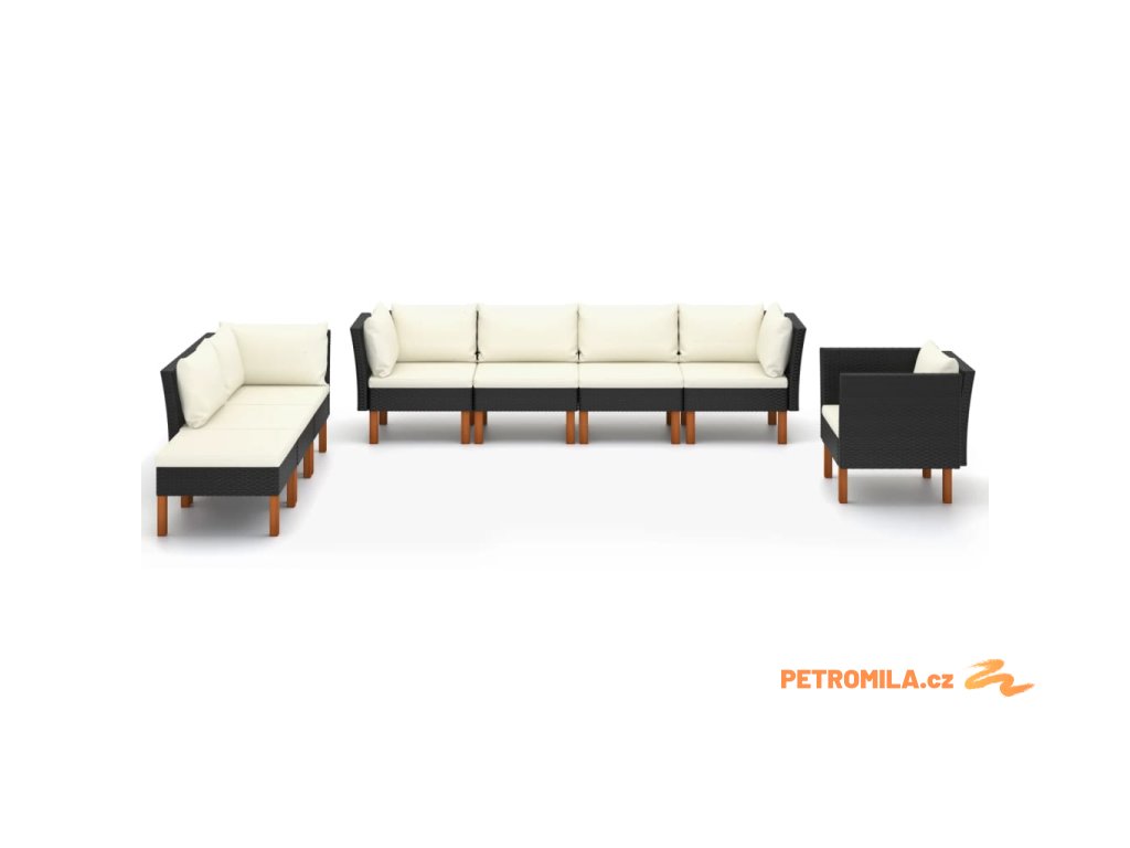 8dílná zahradní sedací souprava polyratan a eukalyptus černá