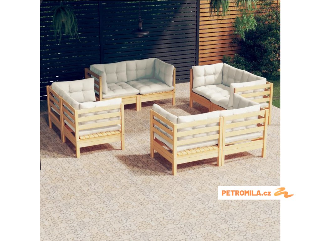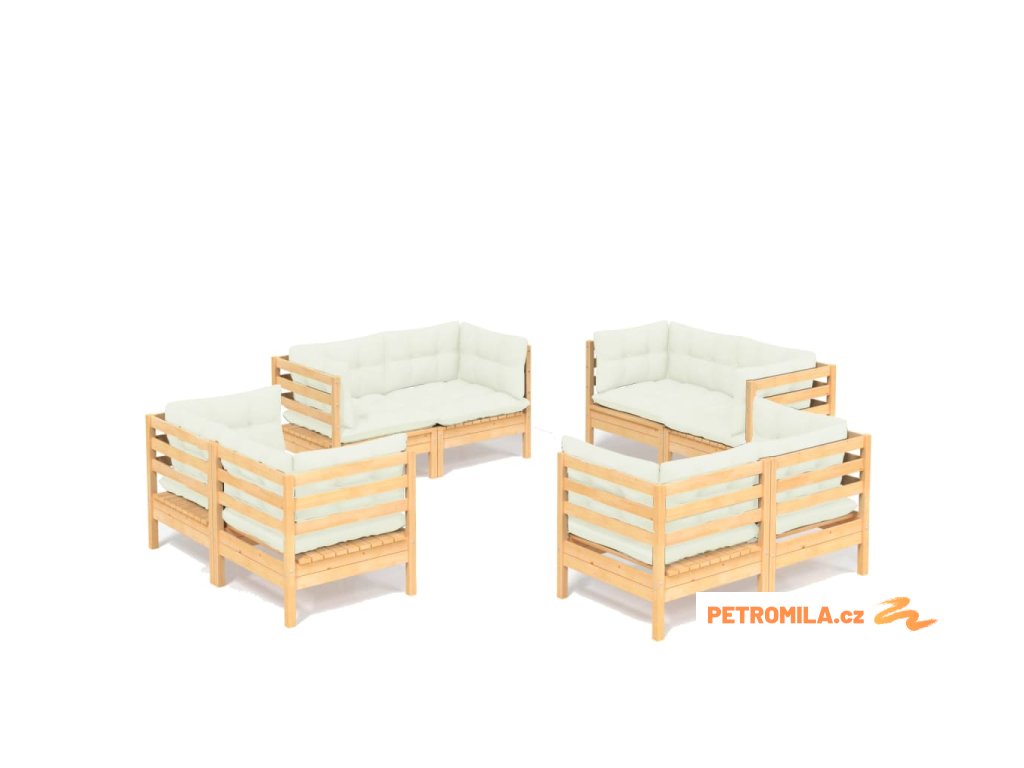 8dílná zahradní sedací souprava s krémovými poduškami borovice