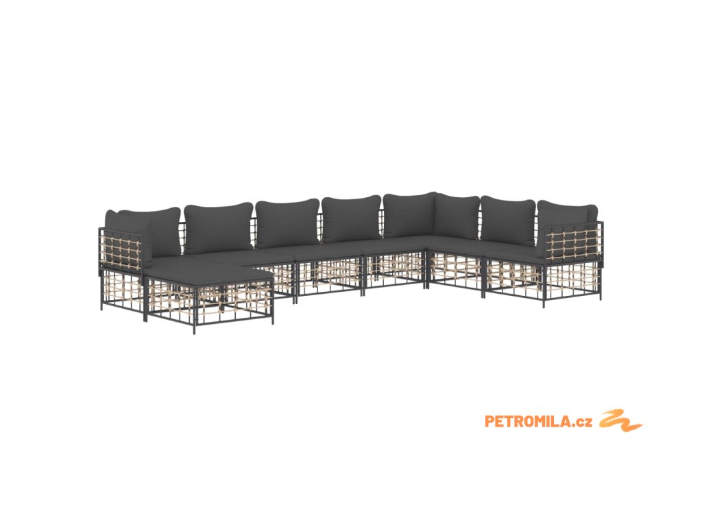8dílná zahradní sedací souprava s poduškami antracit polyratan
