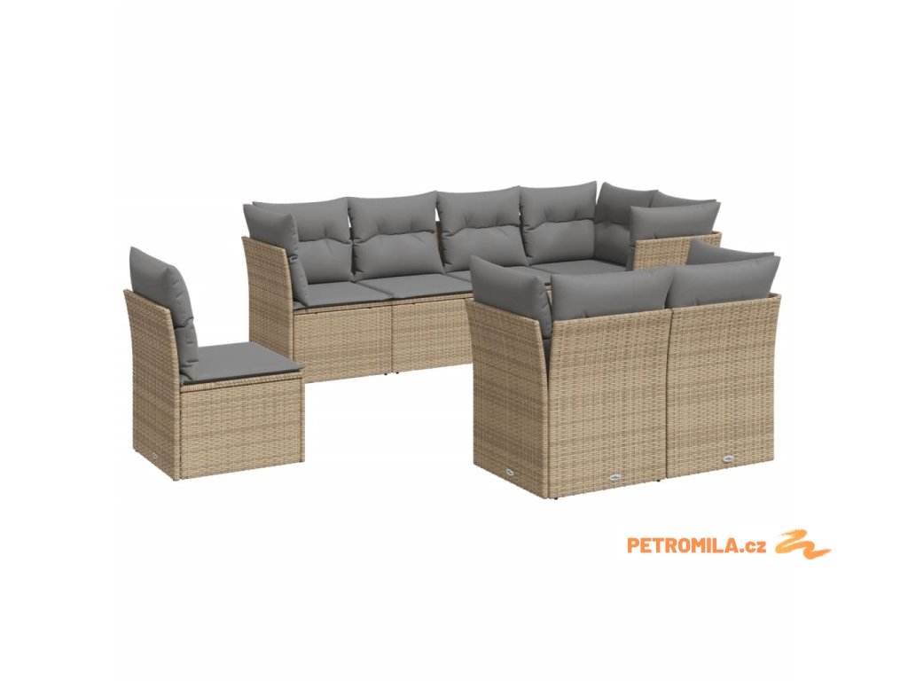 8dílná zahradní sedací souprava s poduškami béžová polyratan