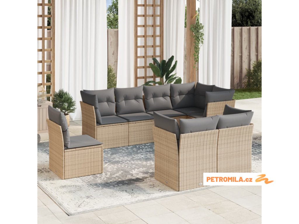 Sada zahradních pohovek s polštářem 9 pcs Béžová Poly ratan