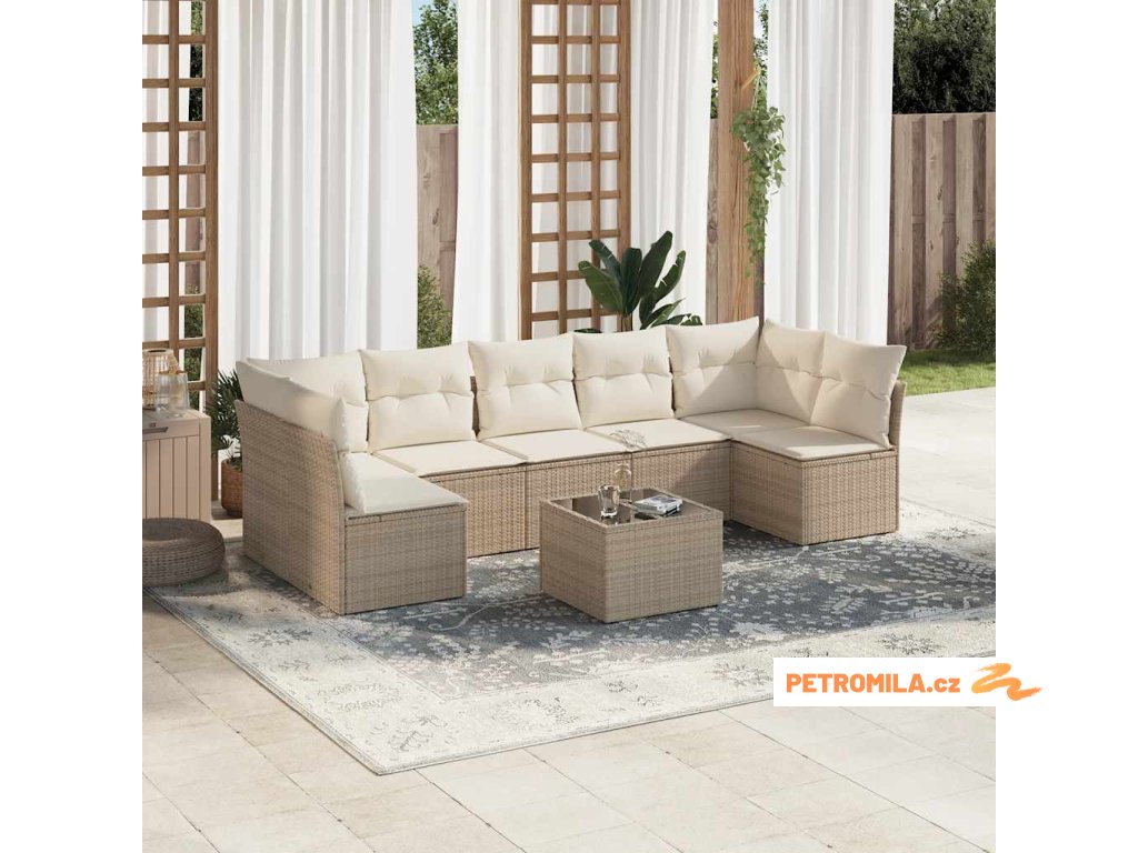 8dílná zahradní sedací souprava s poduškami béžová polyratan