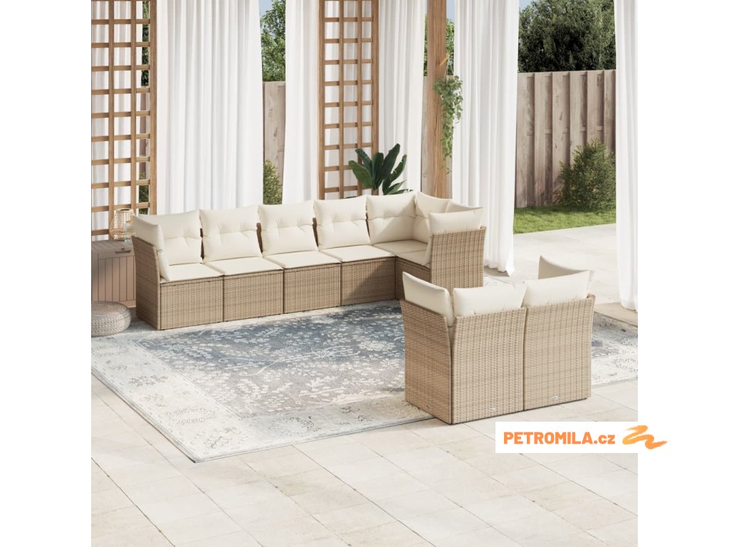 8dílná zahradní sedací souprava s poduškami béžová polyratan