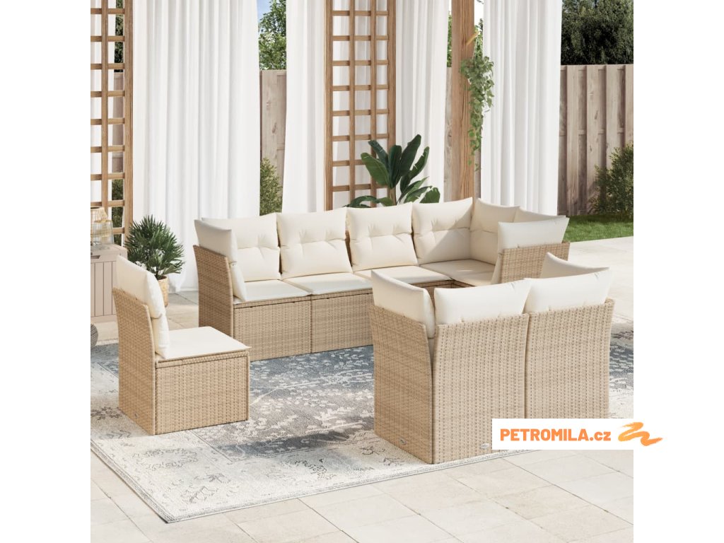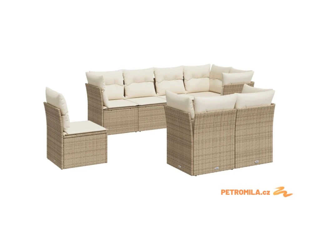 8dílná zahradní sedací souprava s poduškami béžová polyratan