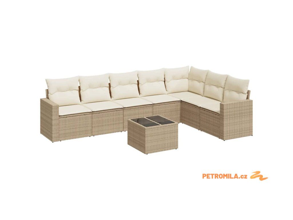 8dílná zahradní sedací souprava s poduškami béžová polyratan