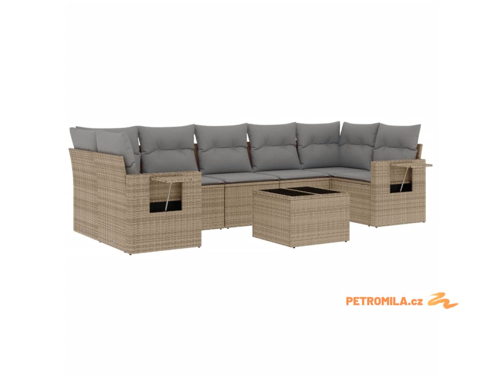 8dílná zahradní sedací souprava s poduškami béžová polyratan