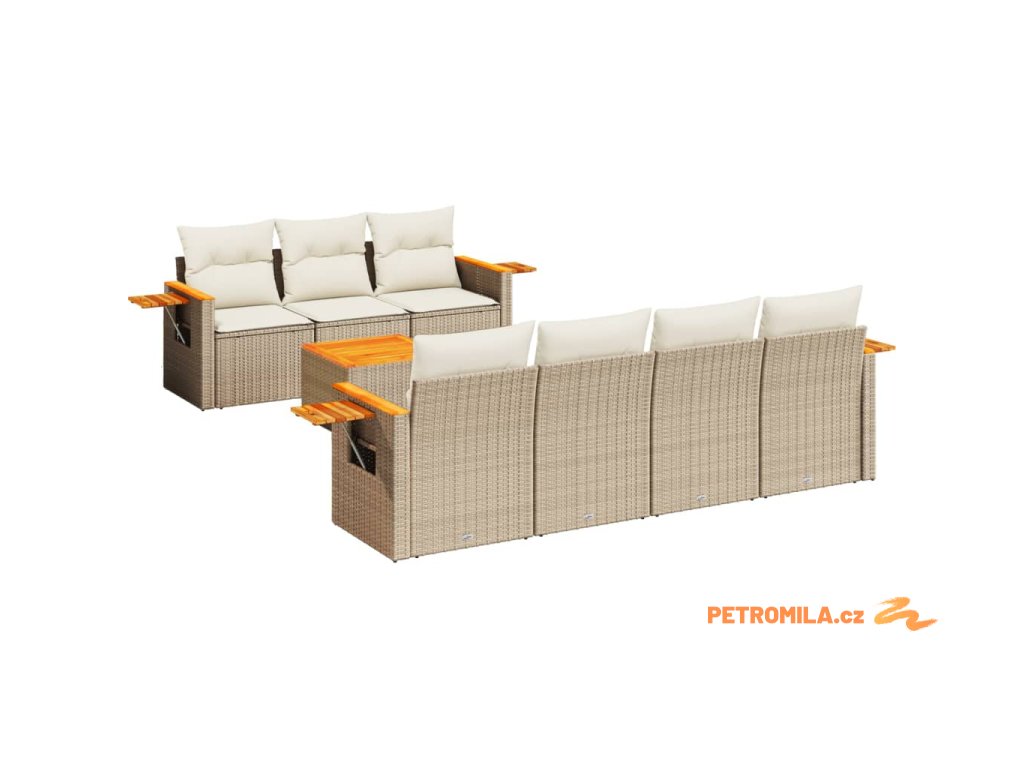 Sada zahradních pohovek s polštářem 8 pcs Béžová Poly ratan
