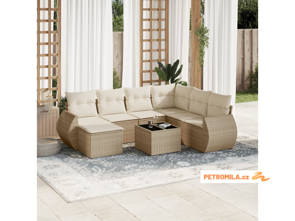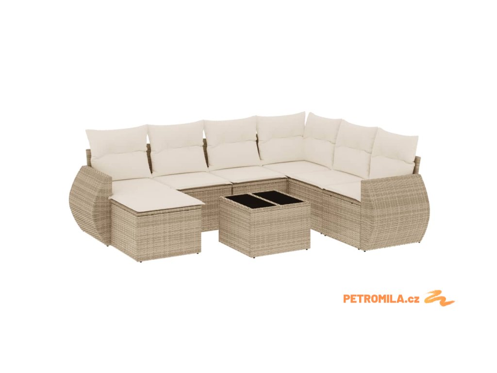 Sada zahradních pohovek s polštářem 8 pcs Béžová Poly ratan
