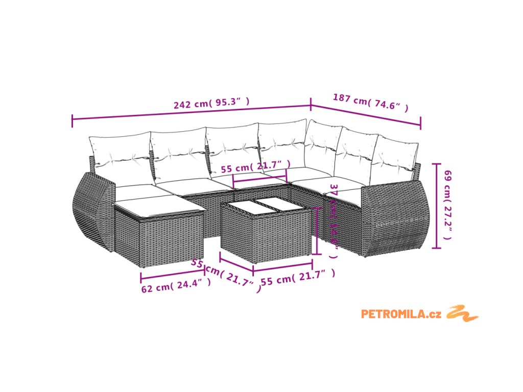 Sada zahradních pohovek s polštářem 8 pcs Šedá Poly ratan