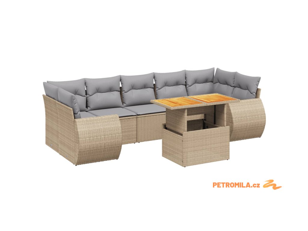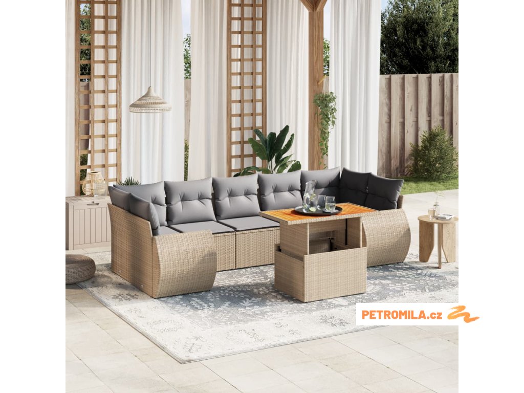 Sada zahradních pohovek s polštářem 8 pcs Béžová Poly ratan