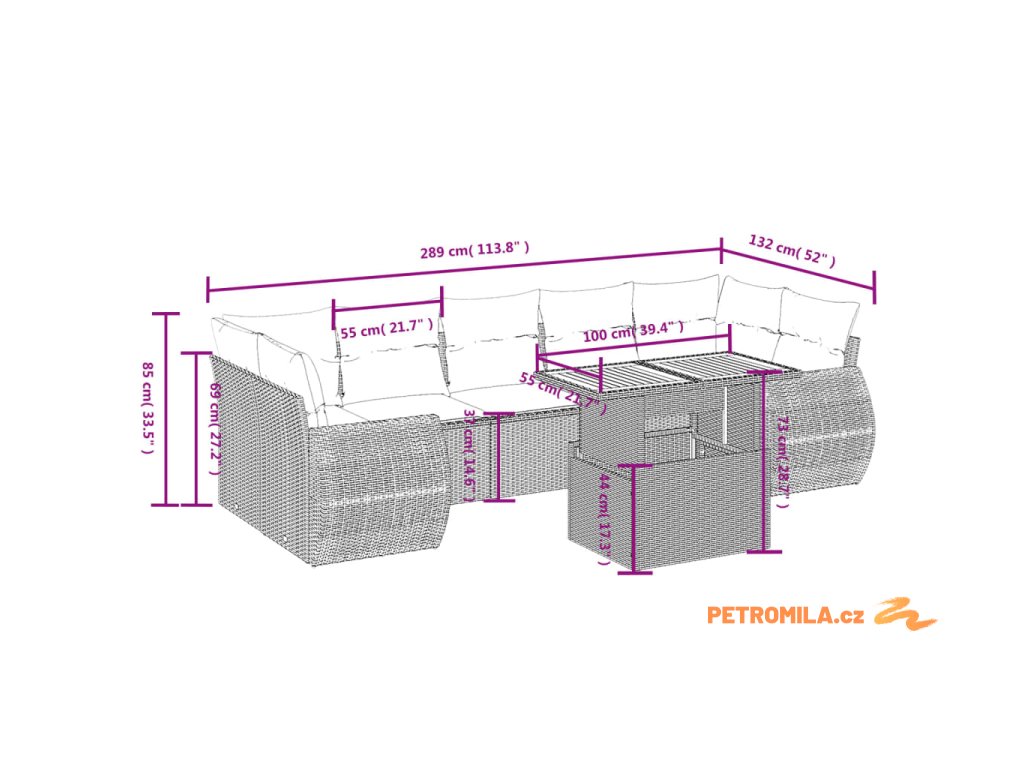 - Rozměry podušky na sedák: 55 x 55 x 3 cm (Š x H x T)