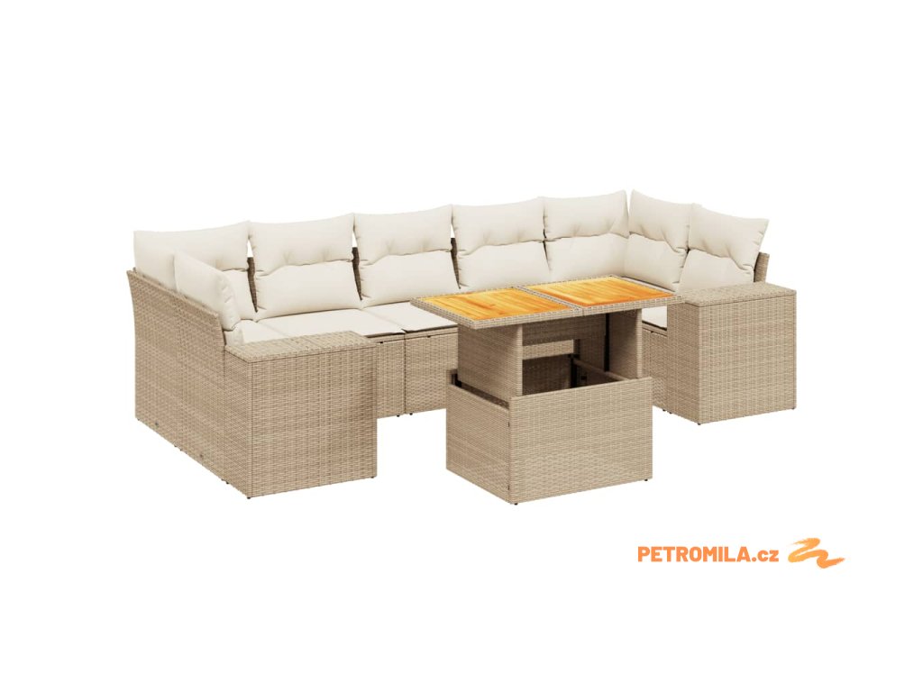 Sada zahradních pohovek s polštářem 8 pcs Béžová Poly ratan