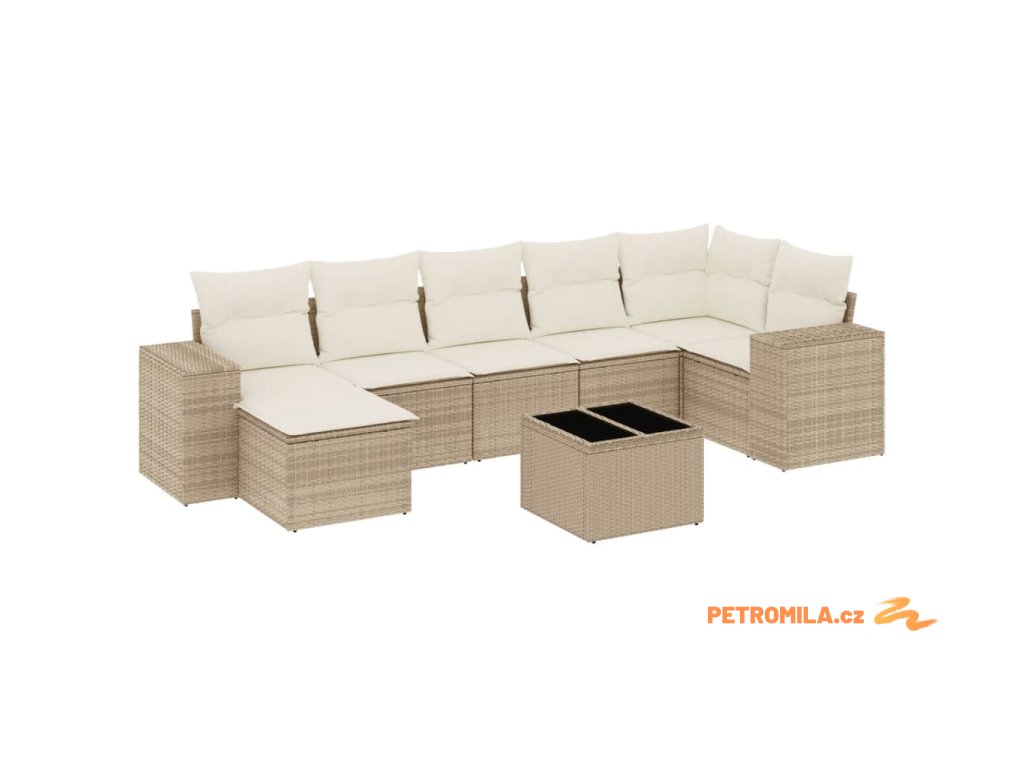 Sada zahradních pohovek s polštářem 7 pcs Béžová Poly ratan
